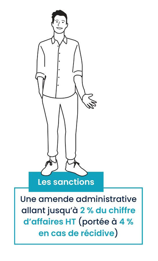 Les sanctions peuvent aller jusqu’à 2 % du chiffre d’affaires HT, et jusqu’à 4 % en cas de récidive.